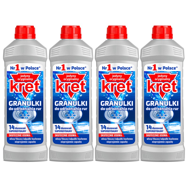 Zestaw KRET Granulki do udrażniania rur oryginał 4x 560g 56 dawek