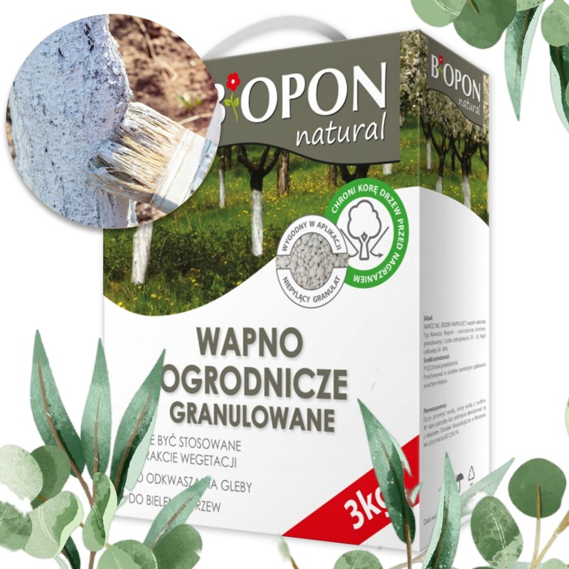 BIOPON Wapno ogrodnicze do Bielenia drzew i Odkwaszania gleby Granulat Karton 3kg