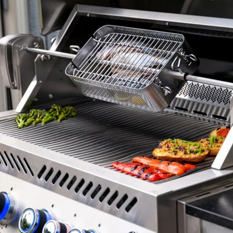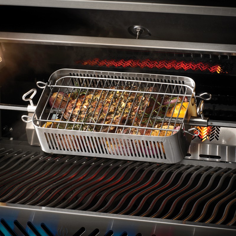 Zwiększ swoje umiejętności grillowania z regulowanym koszem do rożna Napoleon, idealnym akcesorium dla każdego miłośnika grilla.