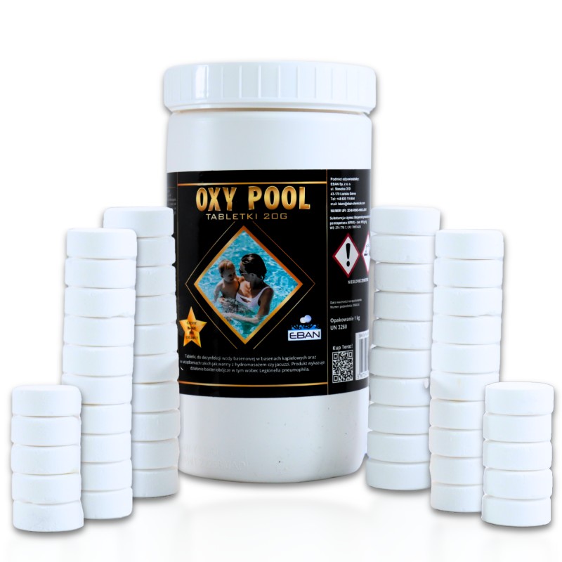 Tabletki EBAN Oxy Pool 20g Aktywny TLEN do basenu dezynfekcja wody dla alergików 1kg