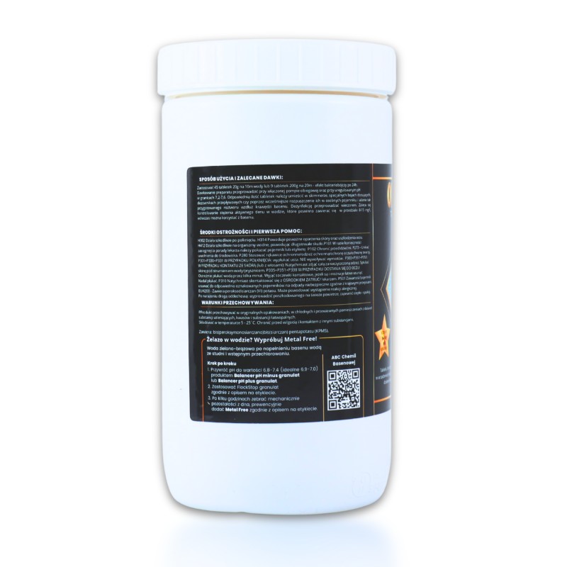 Zgodnie z zaleceniami, stosuje się 45 tabletek 20g na 10 m³ wody. W przypadku mniejszych opakowań (0,5 kg), dawkowanie należy odpowiednio przeliczyć, aby utrzymać optymalny poziom aktywnego tlenu (8–15 mg/l).