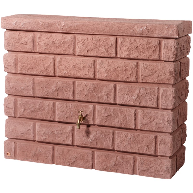 ceglany kolor | imitacja kamiennego murka | tworzywo sztuczne | zbiornik płaski do postawienia przy ścianie | zbiornik 400L | 100x120x40 cm | możliwość zainstalowania kranika | ekologiczne wykorzystanie darmowej wody