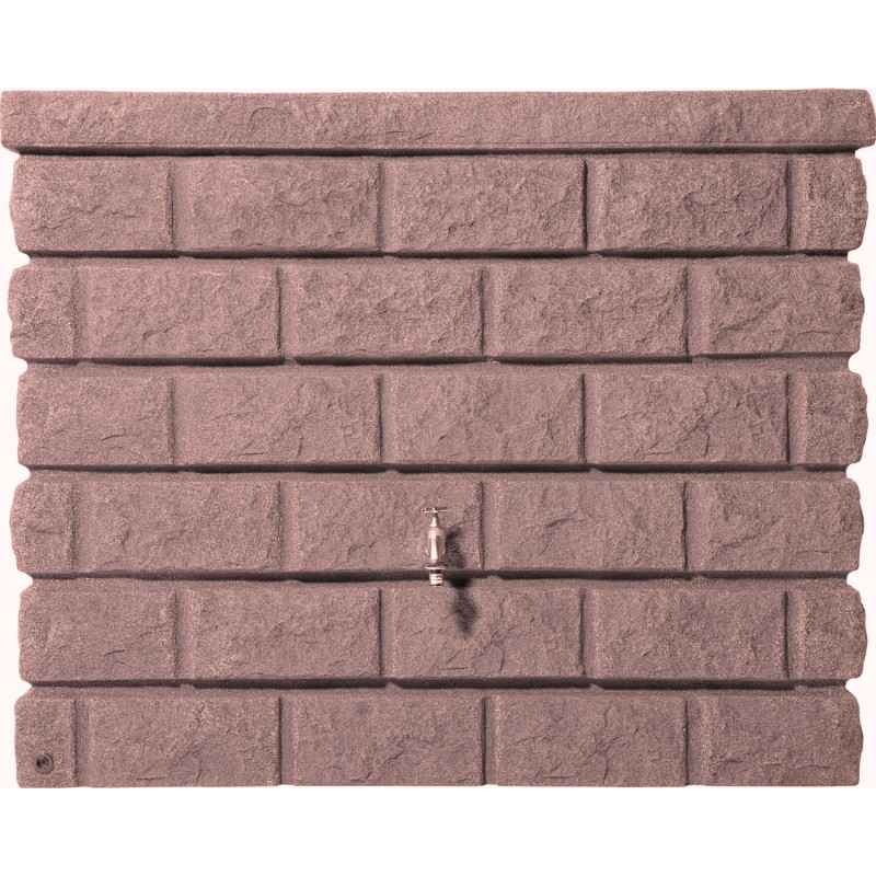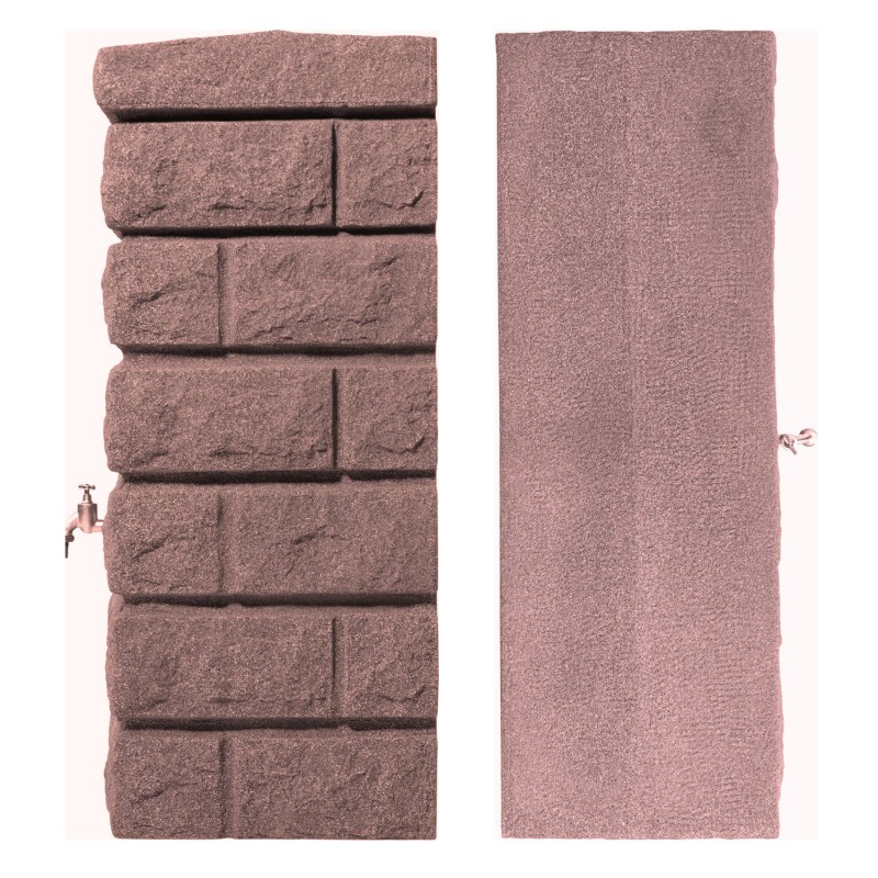 Zbiornik ROCKY 400L Ceglasty to przyścienny pojemnik na wodę deszczową o fakturze naturalnego kamienia. Dzięki specjalnemu procesowi produkcji każdy egzemplarz jest unikalny.