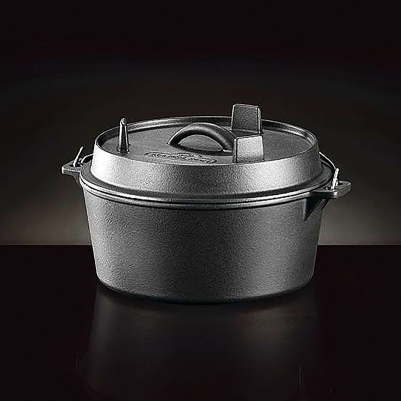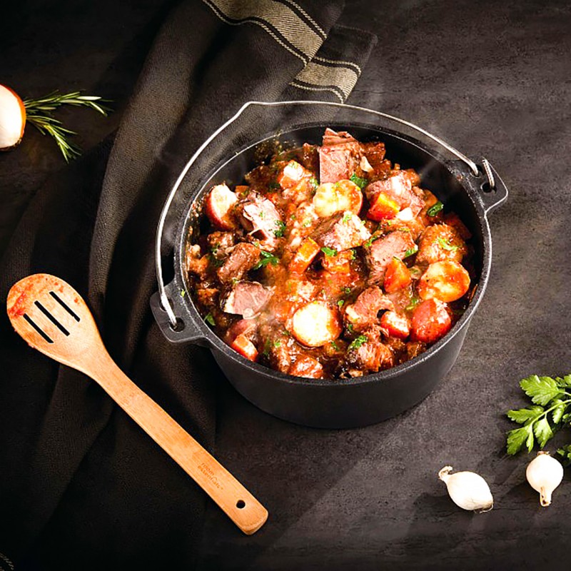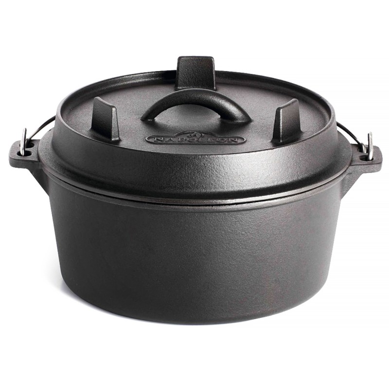 Żeliwny holenderski kociołek Napoleon wykonany z solidnego, ciężkiego żeliwa, stanowi idealne narzędzie do przygotowywania sycących, jednogarnkowych posiłków dla rodziny i przyjaciół.