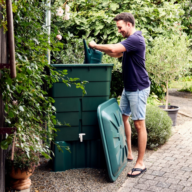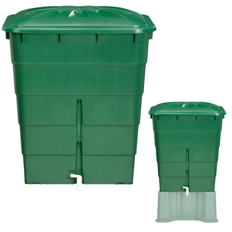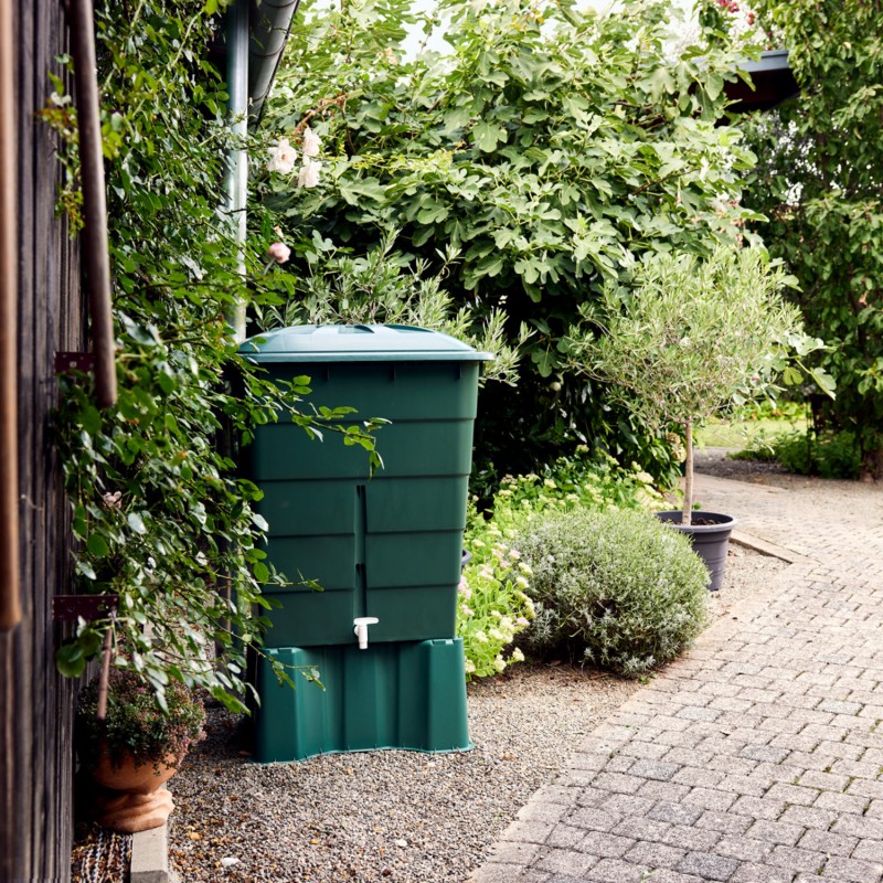 300L | wymiary 92x80x66 cm | trwały materiał z recyklingu | odporny na Słońce i mróz | zdejmowalna pokrywa i kranik | ekonomiczne zbieranie deszczówki | tani zbiornik