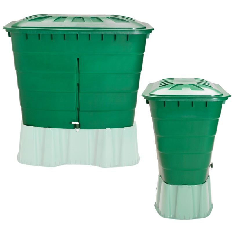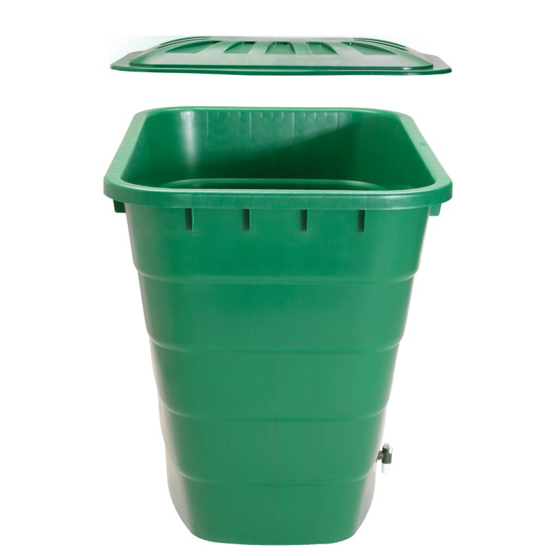 300L | wymiary 93x80x124 cm | trwały materiał z recyklingu | odporny na Słońce i mróz | zdejmowalna pokrywa i kranik | ekonomiczne zbieranie deszczówki | tani zbiornik