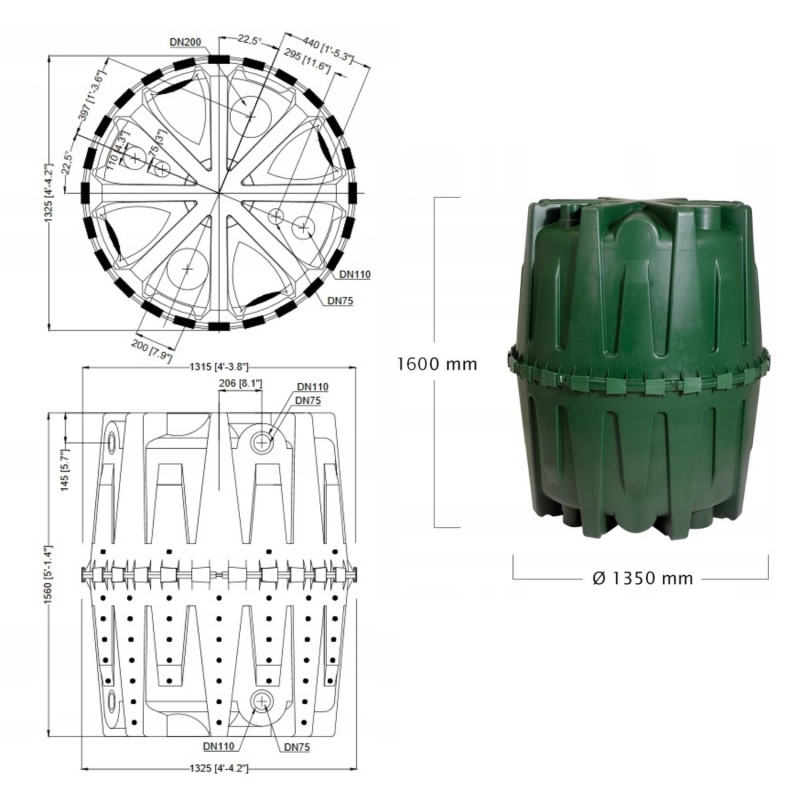 Wykonany w 100 % z tworzywa z recyklingu, odporny na promieniowanie UV i uszkodzenia mechaniczne, pozwala na zbieranie deszczówki naziemnie, podziemnie lub w piwnicy.