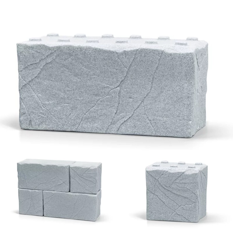 Zbiornik Stone Block charakteryzuje się unikalną, kanciastą bryłą przypominającą naturalny kamień i murek ceglany. Pojemność 270 L pozwala na efektywne gromadzenie wody opadowej, a wymiary 116 × 38 × 76 cm sprawiają, że konstrukcja zajmuje niewiele miejsca. Modułowe łączenia dają możliwość rozbudowy o kolejne elementy z tej serii, bez rezygnacji z estetyki i spójnego stylu.