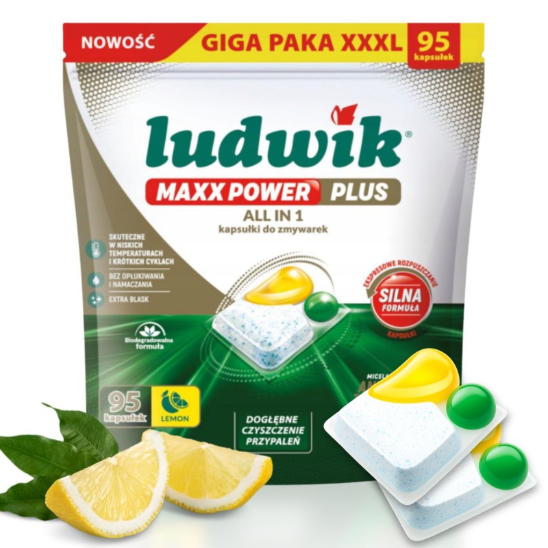 Ludwik Maxx Power ALL-IN-1 Kapsułki do zmywarki cytrynowe 95 szt.