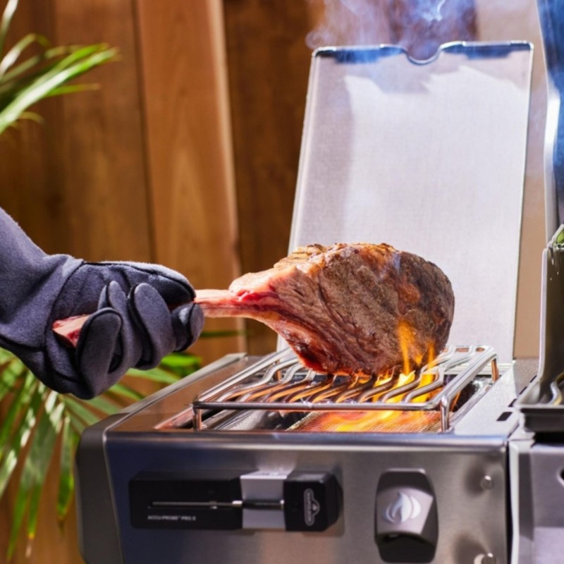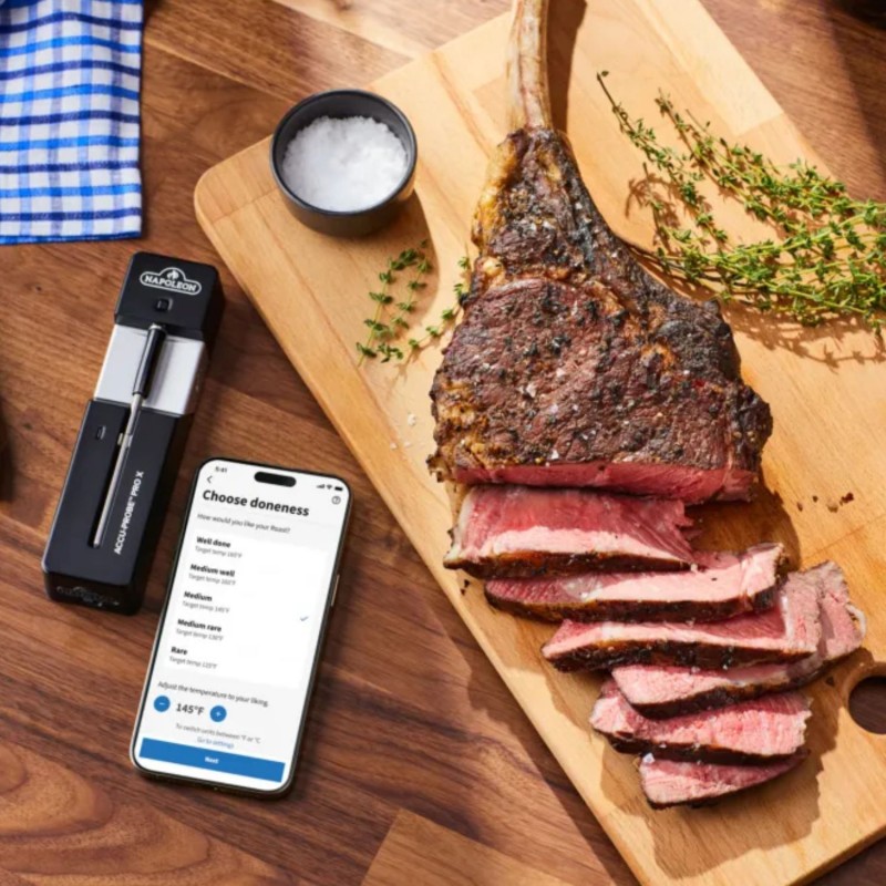Zapomnij o staniu nad grillem z zegarkiem w ręku. Dzięki łączności Bluetooth o zasięgu aż 275 metrów, możesz kontrolować temperaturę potrawy z ogrodu, kuchni lub leżaka przy basenie. Połącz termometr z aplikacją Napoleon Home i otrzymuj powiadomienia w czasie rzeczywistym: kiedy obrócić mięso, kiedy wyjąć stek, kiedy zaczyna się magia smaku.