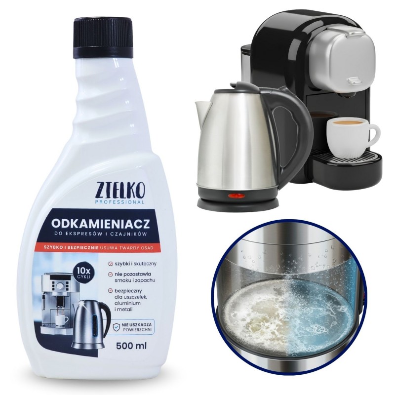 Twarda woda z czasem osadza się w postaci kamienia, który utrudnia pracę urządzeń i pogarsza smak napojów. Zielko skutecznie rozpuszcza ten osad, przywracając pełną moc grzania i szybkie działanie czajników oraz ekspresów.