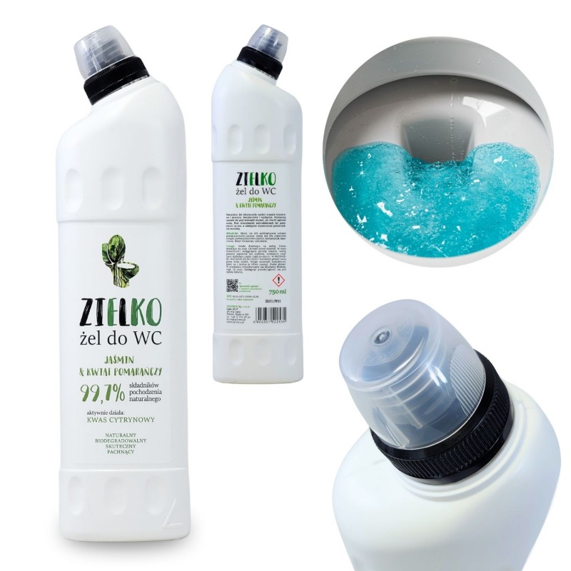 ZIELKO Naturalny Żel WC Jaśmin Kwiat Pomarańczy 500 ml. Skuteczny, naturalny żel WC o działaniu odkamieniającym. Bezpieczna formuła oparta na działaniu kwasku cytrynowego. Zestaw 4 x 500 ml.