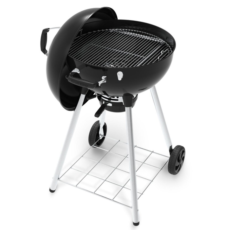 Oparty na solidnej podstawie czterech nóżek z półką dolną do przechowywania akcesoriów czy worka z węglem może być łatwo przestawiony dzięki 2 kołom o średnicy 18 cm.