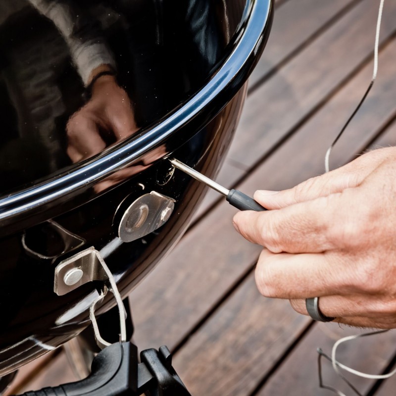 Dzięki czemu skontrolujesz temperaturę mięsa bez konieczności unoszenia pokrywy i przerywania cyrkulacji cieplnej. wewnątrz piekarnika grilla.