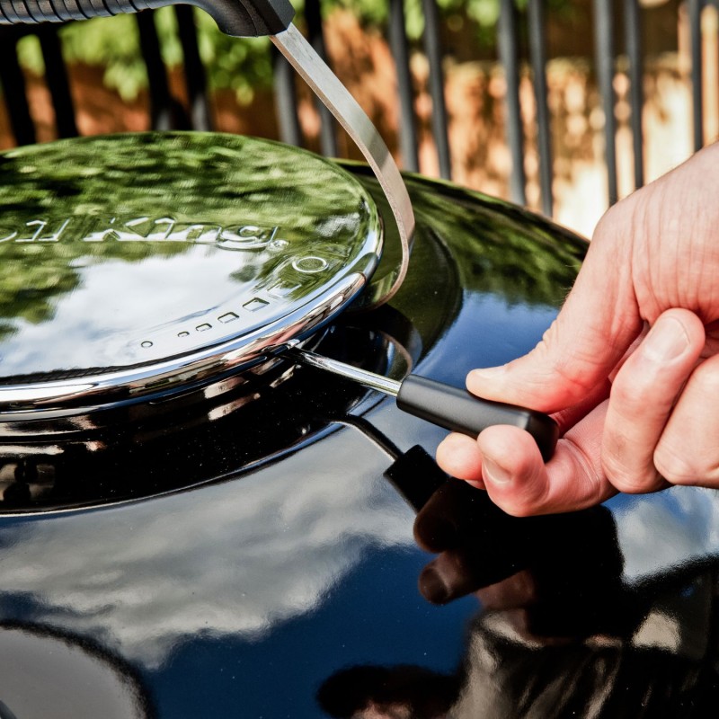 Dzięki Broil King Gem Kettle 47 cm możesz bez trudu regulować temperaturę szybem Roto Draft, dorzucać węgiel bez przerywania grillowania dzięki bocznym uchwytom w głównym ruszcie