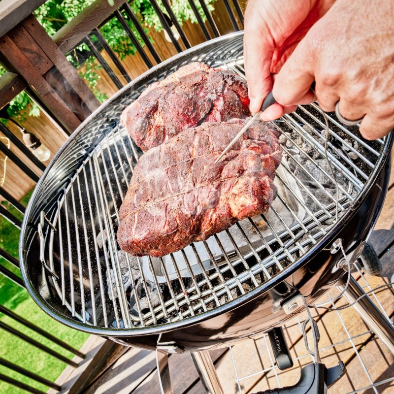 Patrzysz na steki i monitorujesz temperaturę mięsa przez otwór na sondę Thermo-Port, nie musisz wcale zdejmować pokrywy!
