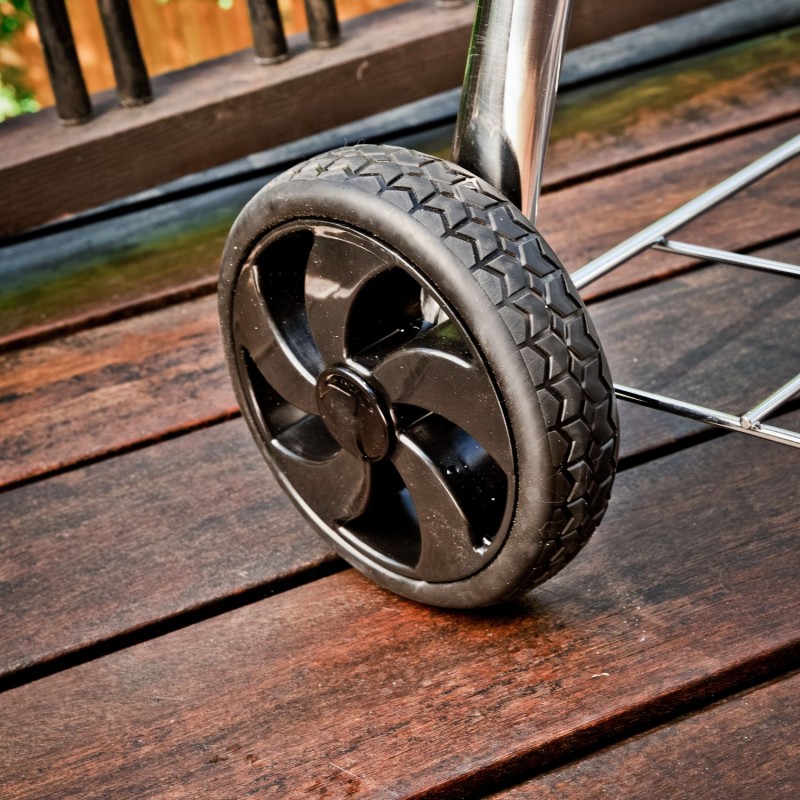 Dwa duże kółka o średnicy 18 cm ułatwiają wygodne przemieszczanie grilla po tarasie lub ogrodzie.